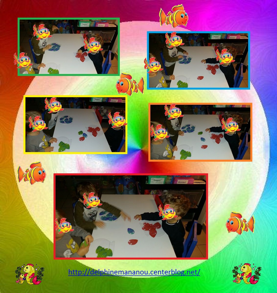 Découper les poissons et les aquariums et les plastifier, vous pouvez comme moi redessiner les aquariums derrières et coller un poisson dessus avant de les plastifier, plus facile pour les plus jeunes enfants